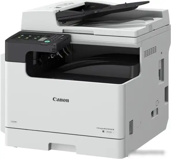 МФУ Canon imageRUNNER 2425i — это многофункциональное устройство, которое умеет печатать, копировать и сканировать бумаги формата A3 в черно-белом цвете. Скорость печати достигает 25 страниц в минуту, а время разогрева всего 10 секунд, что помогает быстро выполнять задания. Оно оснащено 7-дюймовым сенсорным экраном для удобного управления и автоматической двусторонней печатью. Встроенный накопитель на 64 Гб позволяет хранить важные документы, а входные лотки вместимостью до 580 листов обеспечивают работу без частых заправок. Кроме того, есть возможность сканирования с отправкой в Интернет и поддержка мобильных устройств через Wi-Fi.