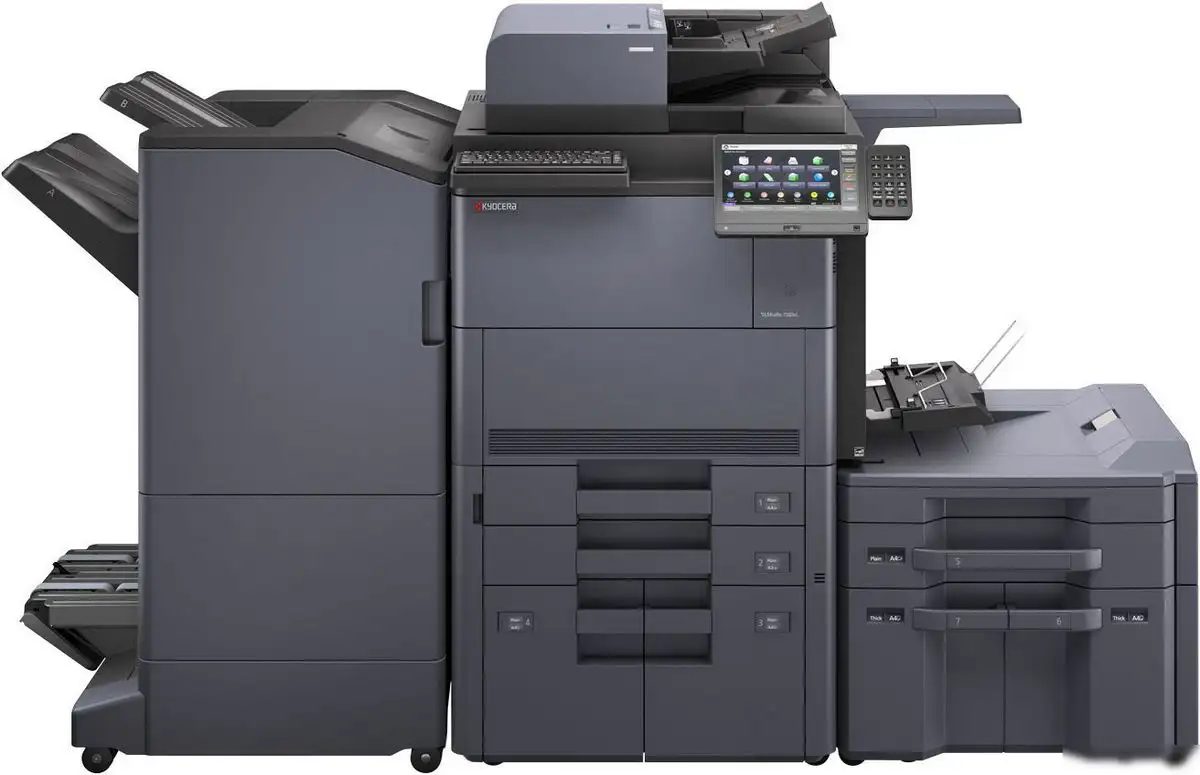 МФУ Kyocera Mita TASKalfa 7353ci — это многофункциональное устройство, которое может печатать, копировать и сканировать форматом A3 (297x420 мм). Оно работает на лазерной технологии и обеспечивает быструю печать — до 73 страниц в минуту для черно-белых документов и 65 — для цветных. Устройство имеет встроенный сенсорный экран 10.1 дюйма, что удобно при работе и управлении задачами. Есть возможность двусторонней автоматической печати и сканирования, а также отправки сканов по электронной почте. Емкость входных лотков достигает 7 650 листов, а в качестве опции можно подключить дополнительные лотки для большого объема печати. Среди функций есть возможность печати с мобильных устройств и поддержка операционных систем Windows, Mac OS, Linux, что делает его универсальным для любой организации.