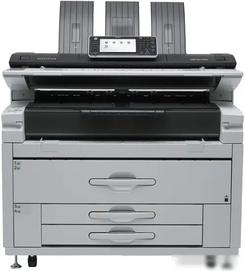 Принтер Ricoh MP W7100SP предназначен для печати больших форматов до размеров A0 (841x1189 мм). Он выполняет черно-белую печать с разрешением 600 x 600 dpi и может копировать и сканировать документы. Благодаря встроенному сканеру с высоким разрешением до 1200 x 1200 dpi, вы быстро и четко оцифруете важные чертежи или документы. Максимальная скорость вывода первой страницы составляет всего 13 секунд, а время разогрева — 120 секунд. Он поддерживает работу с большими объемами — входной лоток вмещает до 501 листа, а выходной — до 109. Устройство имеет 9-дюймовый дисплей для удобного управления и встроенный накопитель на 320 Гб для хранения файлов. Поддерживаются операционные системы Windows и Mac OS, а наличие Ethernet-интерфейса обеспечивает стабильную сетьевую работу. Этот принтер отлично подходит для офиса и архитектурных бюро благодаря высокой производительности и надежности.