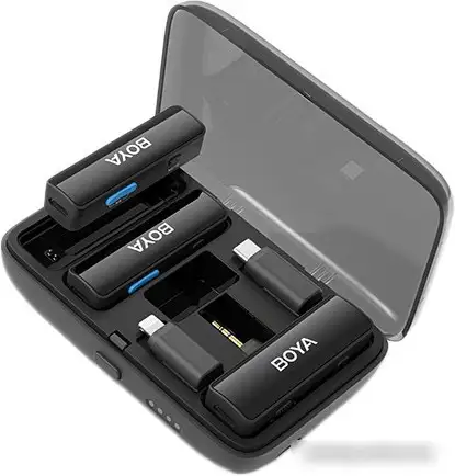 Радиосистема BOYA BOYALINK — это удобное устройство для проведения интервью и репортажей. В комплект входят два портативных передатчика со встроенными микрофонами и один приемник, который легко подключается к смартфону или компьютеру через разъемы USB Type-C, Lightning или 3.5 мм. Работает на частоте 2.4 ГГц и имеет радиус действия до 100 метров, что позволяет свободно перемещаться во время записи. Микрофон с круговой направленностью отлично улавливает звук со всех сторон, а встроенный аккумулятор обеспечивает до 6 часов работы без подзарядки. Устройство легко заряжается через USB Type-C и комплектуется зарядным кейсом на 1000 мА·ч, что увеличивает время использования. В системе есть функция шумоподавления и приглушения микрофона, что помогает добиться четкого и чистого звука. Также есть светодиодные индикаторы, показывающие статус работы системы.