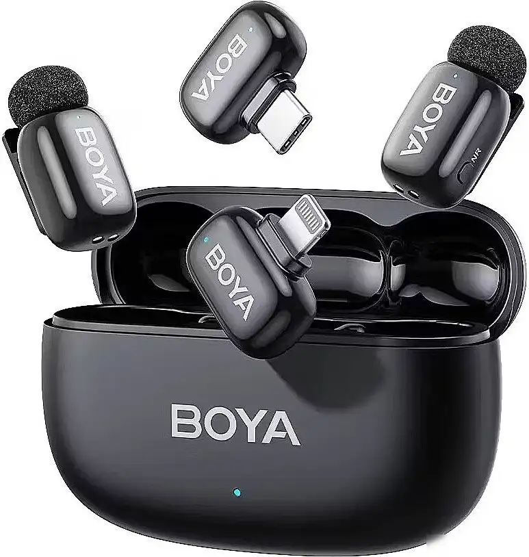 Радиосистема BOYA Mini 2-01 выполнена в компактном черном корпусе и состоит из двух портативных приемников и двух передатчиков со встроенными микрофонами. Она предназначена для записи интервью и репортажей, подходит для использования со смартфонами благодаря разъемам USB Type-C и Lightning. В системе используется радиочастота 2.4 ГГц, что обеспечивает стабильную передачу сигнала. Микрофоны имеют круговую направленность, регулируемую чувствительность и высокое качество звука с частотным диапазоном 20–20 000 Гц. В комплекте есть внешняя ветрозащита и зарядный кейс, что удобно при съемках на улице. Передатчики и приемники работают до 6 часов на одной зарядке, что позволяет длительно вести работу. Все элементы могут заряжаться через разъем USB Type-C. Использование системы значительно улучшает качество звука при мобильной записи. Благодаря легкому весу (всего 5 г), ее удобно носить и использовать во время работы.