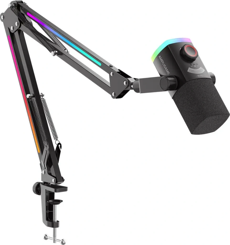Проводной микрофон FIFINE AM8PROT выполнен в надежном черном корпусе из пластика и металла. Он подходит для стриминга и подкастов, благодаря кардиоидной направленности, которая отлично улавливает голос и уменьшает шумы со сторон. Микрофон подключается через USB Type-C и USB Type-A, что позволяет использовать его с разными устройствами. Он оборудован внешней ветрозащитой и антивибрационным держателем, что помогает повысить качество звука. Регулятор чувствительности и громкости на наушниках позволяют быстро настроить звук под ваши нужды. Микрофон имеет функцию приглушения (mute) и светодиодную индикацию работы. Встроенные цифровые эффекты отсутствуют, но есть подсветка для удобства использования. Комплектация включает стойку-пантограф, крепление для стола, ветрозащиту и USB кабель, что делает его готовым к использованию сразу после покупки.
