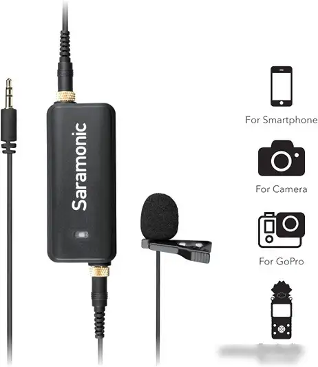 Проводной микрофон Saramonic LavMic — это компактное устройство, которое идеально подходит для интервью и репортажей. Он работает с электретной технологией и имеет круговую направленность, что помогает записывать звук четко и ясно со всех сторон. Микрофон подключается через разъем 3.5 мм и идет в комплекте с аудиомикшером, что позволяет контролировать уровень звука и подключать к разным устройствам. В комплект также входит поролоновая ветрозащита, клипса и кабели для подключения к смартфонам, камерам и фотоаппаратам. Благодаря длине кабеля в 2.4 м, есть свобода перемещаться во время записи без ограничений. Встроенный светодиодный индикатор показывает статус работы микрофона, что удобно при использовании в разных условиях.