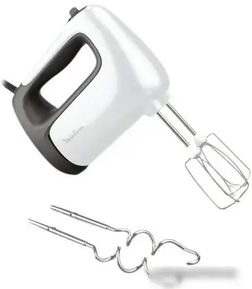 Миксер Moulinex HM460110 — это удобный ручной прибор с мощностью 500 Вт, который легко справится с взбиванием и смешиванием продуктов. У него есть 5 скоростей и турборежим, что позволяет выбрать нужный уровень для разных задач. Корпус сделан из прочного пластика, а цвет — белый и черный. Миксер комплектуется двумя насадками-венчиком и одной насадкой для теста, что делает его универсальным инструментом на кухне. Есть кнопка для быстрого отсоединения насадок, что упрощает процесс уборки. Он не имеет дополнительных функций, таких как измельчитель или блендер, и не оснащен мерным стаканом или специальными приспособлениями для хранения. Благодаря этим особенностям, этот миксер удобен для домашних задач и прост в использовании.