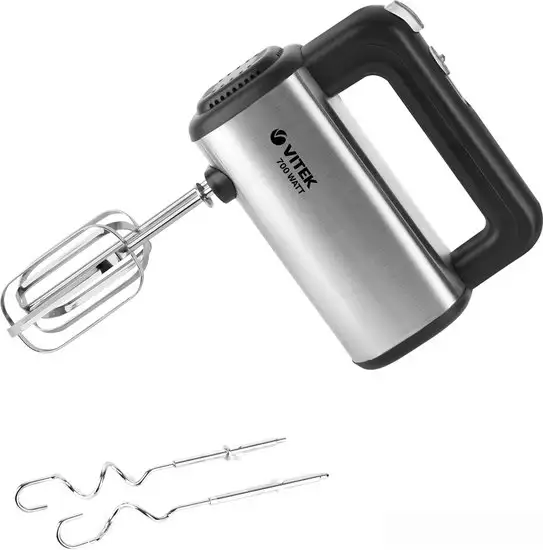 Миксер Vitek Greek VT-1414 — это ручное устройство с мощностью 700 Вт, которое работает от сети. Он удобно управляется благодаря пяти скоростям, позволяющим подобрать нужную силу смешивания. Корпус сделан из прочных материалов: металл и пластик, что обеспечивает долговечность и легкость в использовании. Миксер оснащен двумя насадками для взбивания и двумя — для теста, что делает его универсальным для различных задач. Он легко включает и отключает насадки с помощью специальной кнопки. Модель имеет цвет нержавеющая сталь и черный, стильный дизайн. В комплекте есть насадка для теста и венчики, что позволяет быстро и удобно готовить тесто или взбивать продукты. Миксер не включает измельчитель или блендер, что подходит для домохозяек, которым нужна простая и надежная техника. Благодаря компактным размерам и простоте использования, он станет удобным помощником на кухне.
