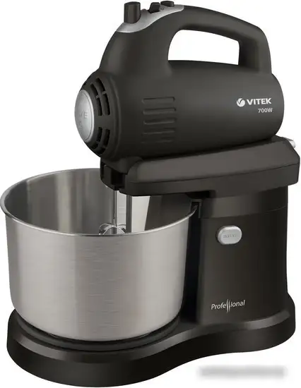 Миксер Vitek VT-1415 BK — это стационарный прибор с мощностью 700 Вт и пятью скоростями, который отлично подойдет для приготовления различных блюд. Благодаря вращающейся чаше объемом 2,8 литра и металлическому материалу она помогает быстро и удобно смешивать ингредиенты. В комплект входят две насадки для взбивания и теста, что делает его универсальным для домашних кулинарных задач. Есть турборежим, который ускоряет процесс смешивания, а кнопка отсоединения насадок облегчает очистку. Корпус из пластика в черном и серебристом цвете выглядит современно и легко моется. Этот миксер отлично справляется с основными задачами без лишних функций и занимает мало места на кухне.