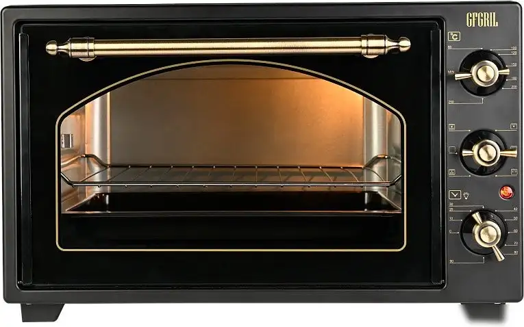 Мини-печь GFgril GFO-42-black — это электросовременное устройство черного цвета с объемом 42 литра. Она отлично подходит для приготовления различных блюд благодаря 5 режимам работы и мощностью 2000 Вт. В конструкции есть механический таймер и термостат, позволяющие точно управлять процессом приготовления, а также встроенное освещение, чтобы следить за блюдами. В комплект входят вертел, противень, решетка и форма для пиццы, что расширяет возможности готовки. Удобные утапливаемые ручки делают устройство компактным, а его размеры (ширина 52 см, глубина 45.4 см, высота 32.2 см) позволяют разместить его в любой кухне. Эта мини-печь проста в использовании и надежна, отлично подходит для дома и небольших кухонь.