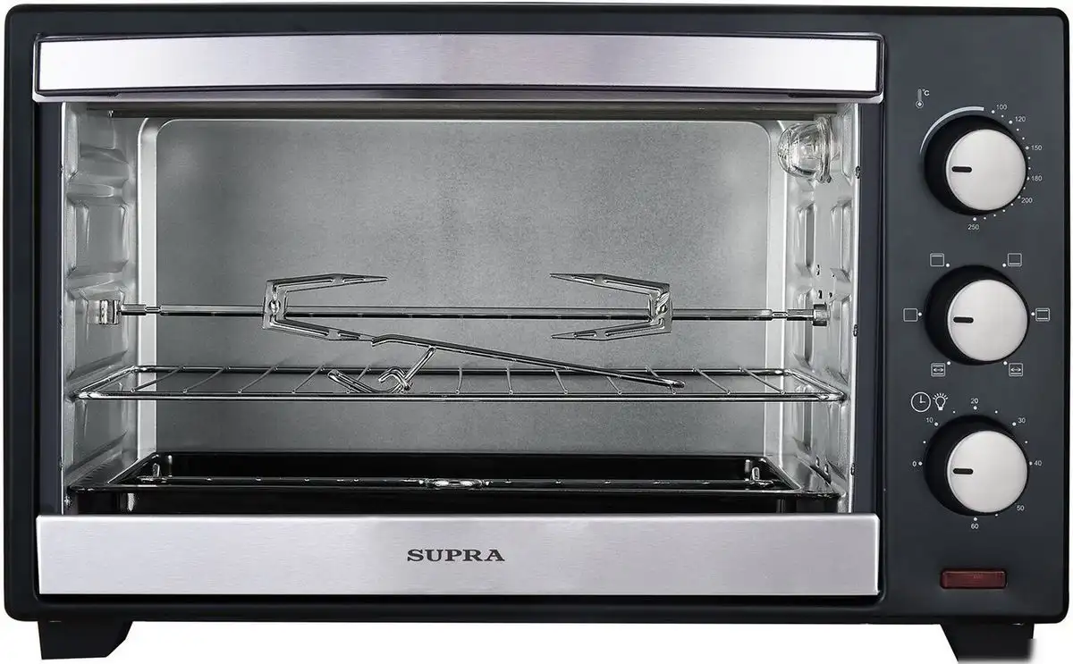 Мини-печь Supra MTS-3506 — это компактное устройство с объемом 35 литров для домашнего использования. Она работает на электричестве и не имеет функций приготовления на пару, микроволн или конвекции, что делает её простым в управлении прибором. Управление осуществляется механическим таймером и регулятором температуры, что обеспечивает точность при приготовлении блюд. Максимальная температура духовки достигает 250 °C, а внутренние стенки покрыты эмалью для легкой очистки. Печь оснащена 5 режимами работы, включая верхний, нижний нагрев и их комбинации, что расширяет возможности готовки. В комплектацию входят вертел, насадка для шашлыка, противень, решетка и ухваты, что помогает готовить разные блюда. Дверца оснащена одним стеклом, внутри есть освещение для удобства контроля процесса. Устройство безопасно и простое в использовании, оно отлично подойдет для приготовления разнообразных блюд дома.