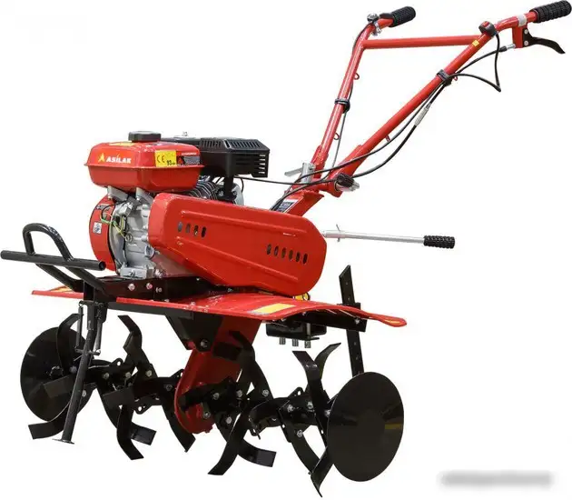 Мотокультиватор Asilak SL-85B — мощное устройство для обработки почвы без колес. Он оснащён бензиновым двигателем мощностью 7,5 л.с. и рабочим объемом 208 см³, что обеспечивает эффективную работу на участке. Ширина захвата регулируется в пределах 75–95 см, а глубина вспашки — до 30 см, что подходит для разных задач. Благодаря ведущей оси и кронштейну он легко сгруппируется с навесным оборудованием. В комплект входят фрезы, щитки и крепеж, что быстро подготовит культиватор к эксплуатации. Три передачи (две вперед и одна назад) позволяют управлять скоростью работы. Простое ручное пуско обеспечивает быстрый запуск. Регулируемый по высоте руль помогает удобно управлять техникой. Вес 80 кг делает его устойчивым, а наличие защитных дисков повышает безопасность работы.