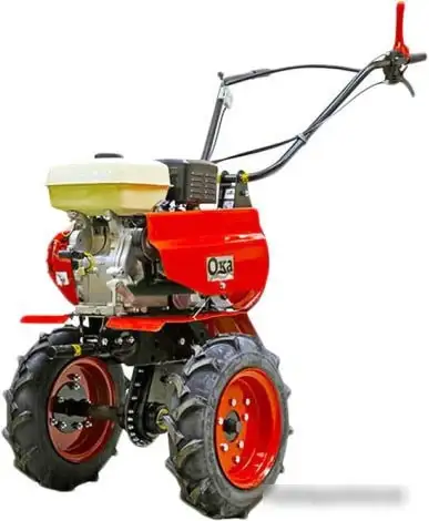 Мотоблок ОКА МБ-1Д2М16 — это устройство с бензиновым двигателем Lifan 177F мощностью 9 л.с., которое помогает облегчить работу на саду или огороде. Он имеет ширину захвата от 72 до 113 см и глубину вспашки до 30 см, что позволяет обрабатывать большие участки земли. Мотоблок легко управляется благодаря четырём передачам и может развивать скорость до 9 км/ч вперёд и назад. Он оборудован валом отбора мощности, что даёт возможность устанавливать навесное оборудование для различных работ. В комплект входят 4 фрезы для рыхления, пневмоколеса и сошник, что расширяет возможности использования. Благодаря надувным колесам и защитным дискам устройство легко перемещать и использовать. Небольшие габариты — 150 см в длину, 60 см в ширину и 105 см в высоту — делают его удобно хранить и транспортировать. Мотоблок прост в запуске — достаточно ручного пуска, и он готов к работе. Весит он всего 90 кг, что облегчает его переноску и монтаж.