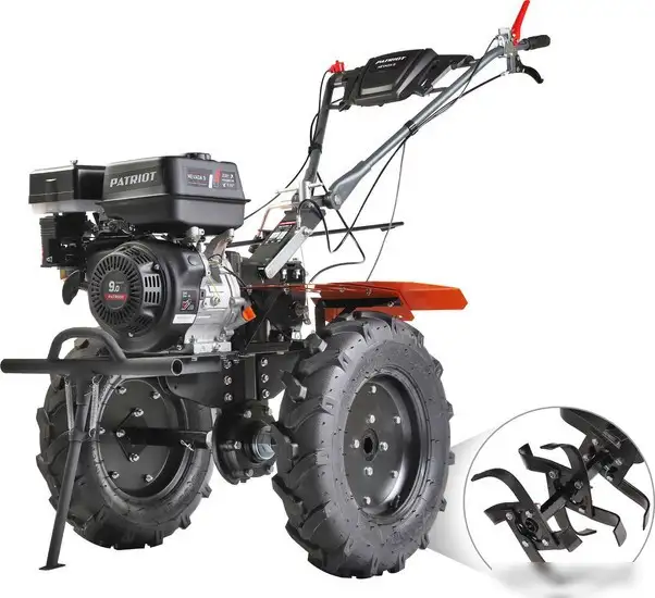 Мотоблок Patriot Nevada 9 подойдет для обработки земли на участке до 3000 м². Он оснащен бензиновым двигателем PATRIOT P 177 F мощностью 9 л.с и объемом 270 см³, что обеспечивает хорошую производительность. Максимальная ширина обработки — 110 см, а глубина — до 34 см. Мотоблок имеет три скорости движения и возможность установки навесного оборудования. В комплект входят колеса, фрезы и другие необходимые детали. Благодаря удобному регулируемому по высоте рулю и надежным колесам, работа с этим мотоблоком станет комфортной и стабильной.