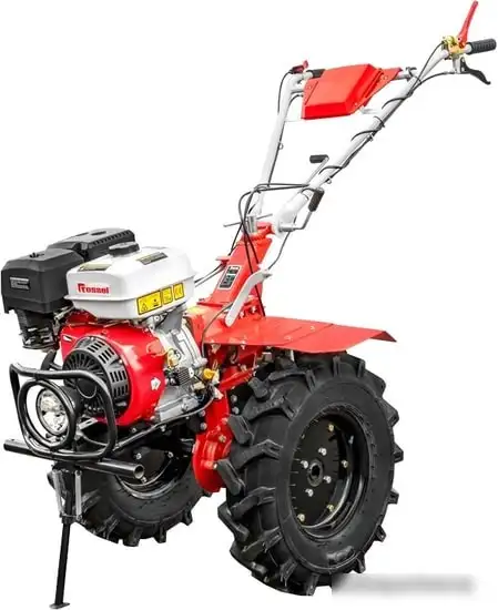 Мотоблок Rossel K-318 — это мощное устройство с бензиновым двигателем GR-18 мощностью 18 л.с. и объемом 420 см³, которое легко справляется с рыхлением грунта и посевными работами. Он оснащен системой агрегатирования с ведущей осью и кронштейном, что обеспечивает стабильную работу и возможность установки навесного оборудования. Мотоблок имеет регулируемый по высоте руль и надувные колеса для комфортной эксплуатации. Ширина обработки грунта регулируется от 85 до 135 см, а глубина вспашки достигает 30 см, что подходит для различных сельскохозяйственных задач. Устройство оснащено четырьмя передачами (три вперед и одна назад), что облегчает управление. Вес мотоблока составляет 175 кг, что позволяет ему быть достаточно устойчивым и надежным. Для запуска используется ручной пуск, а топливный бак вмещает 4 литра топлива. Этот мотоблок отлично подойдет для фермерских работ и обработки земли на приусадебных участках.