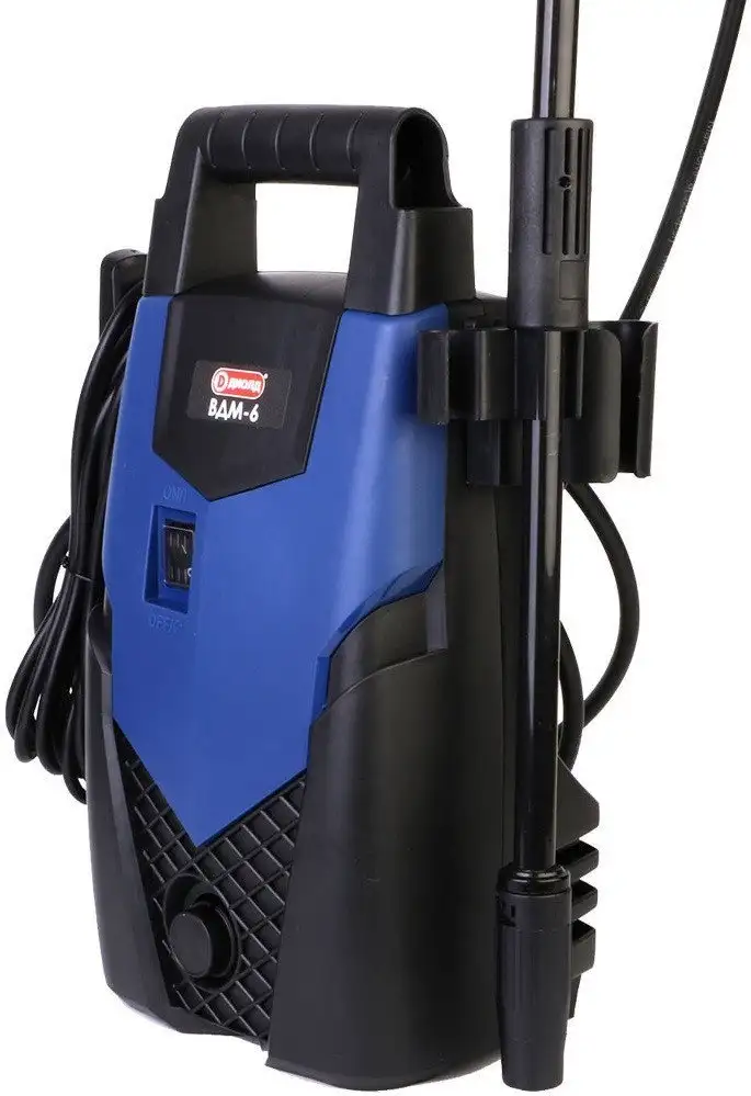 Мойка высокого давления ДИОЛД ВДМ-6 обладает мощностью 1 850 Вт и производит до 330 литров воды в час. Она создает максимальное давление 90 Бар, что позволяет быстро и эффективно чистить поверхности. Устройство не имеет встроенного бака для воды или подачи моющего средства, а корпус сделан из прочного алюминия. Работает на однофазной электроэнергии и подключается через кабель длиной 5 метров. Шланг также имеет длину 5 метров, что обеспечивает хороший охват при работе. Мойка не оснащена колесами или телескопической ручкой, что делает её компактной и легкой — всего 5,6 кг. Она подходит для использования в домашнем хозяйстве и подходит для различных задач по очистке. Простая в использовании и надежная, она легко справляется с загрязнениями на различных поверхностях.