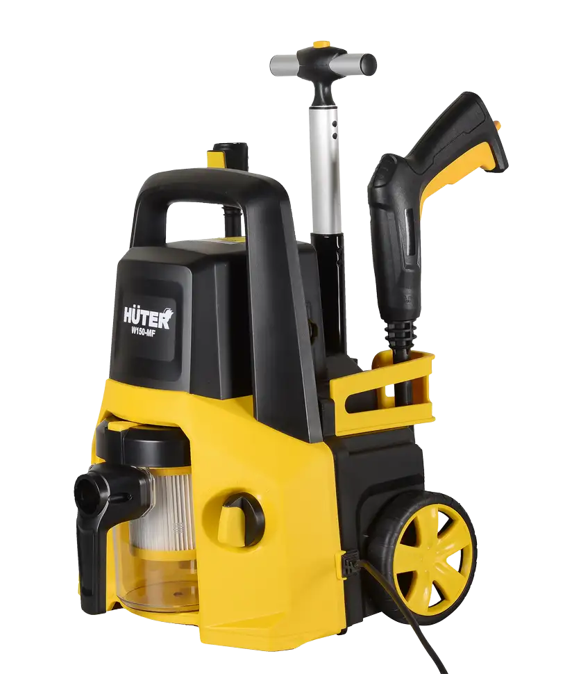 Мойка высокого давления Huter W150-MF предназначена для домашнего использования и подходит для очистки автомобилей, сада и двора. Ее мощность составляет 1700 Вт, что обеспечивает производительность 365 литров воды в час и давление до 100 Бар, а максимальное давление — 150 Бар. Нет встроенного бака для воды и подачи моющего средства, но есть возможность забора воды с помощью шланга. Корпус насоса сделан из алюминия, а шланг высокого давления длиной 8 метров дает свободу движения во время работы. В комплект входит несколько насадок, в том числе регулируемая и турбо, что помогает справиться с разными загрязнениями. Удобство обеспечивает телескопическая ручка и колеса, позволяющие легко перемещать моюку. Эта модель легкая — всего 11 кг — и проста в использовании, даже у новичков есть все необходимое для эффективной уборки.