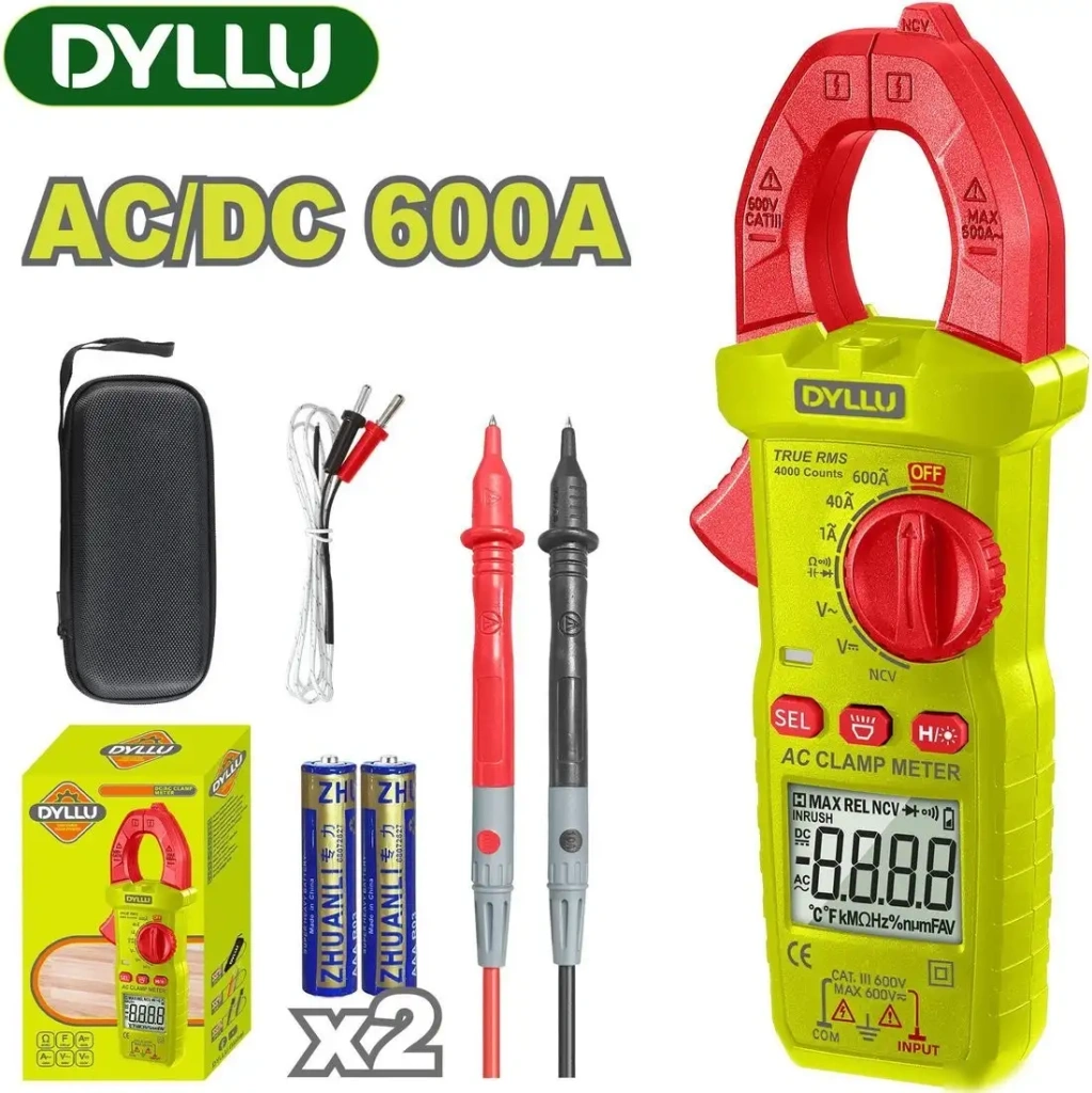 | Информация | -Токовые клещи DYLLU DTDM8602 представляют собой современный измерительный прибор, предназначенный для быстрого и точного измерения переменного и постоянного тока, напряжения, сопротивления, ёмкости, частоты и других параметров в электрических цепях. Модель оснащена информативным ЖК-дисплеем с подсветкой на 6000 отсчётов и встроенным фонариком, что обеспечивает удобство работы даже при плохом освещении. -Данный инструмент отличается широким диапазоном измеряемых величин:переменный ток до 600 А, переменное напряжение до 600 В, постоянное напряжение до 600 В, сопротивление до 40 МОм, ёмкость до 40 000 мкФ и частота до 10 МГц. Также есть функции проверки диодов, измерения скважности (duty cycle) от 1% до 99% и автоматического отключения питания для экономии заряда батареек. -В комплект поставки входят сами токовые клещи, два измерительных щупа, две батарейки типа AAA и коробка для хранения и транспортировки прибора. Устройство работает от двух стандартных батареек AAA, что делает его автономным и мобильным для работы на различных объектах. -DYLLU DTDM8602 выпускается под брендом DYLLU, производителем является компания KEYWAY TECHNOLOGY (NANTONG) CO., LTD (Китай). Прибор имеет гарантию 12 месяцев и поддерживается сервисным центром в Минске. Токовые клещи станут отличным инструментом как для профессионалов, так и для домашних мастеров благодаря своей универсальности, надёжности и расширенному функционалу. |