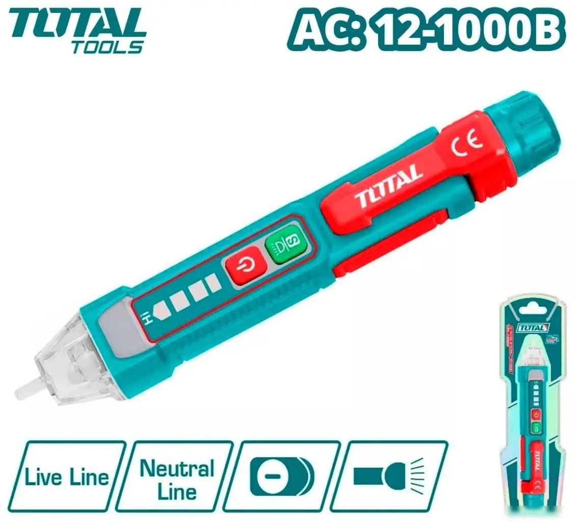 Индикатор напряжения Total THT100091 позволяет безопасно и быстро обнаруживать переменное напряжение до 1000 В без необходимости в контакте с проводами. Он автоматически выключается, что помогает экономить батарею и увеличивает срок службы устройства. Устройство показывает, когда разряжена батарейка, чтобы вы могли вовремя заменить её. Для работы нужен только маленький элемент питания AAA, что делает его удобным и экономичным. Индикатор не включает измерительные щупы или защитный кожух, поэтому его используют для проверок на открытых проводах и устройствах. Его компактный размер и простое управление делают использование максимально удобным. Этот индикатор подходит для быстрого выявления наличия напряжения в электросетях. Он безопасен и помогает избегать электрических травм при работе с электрическими цепями.