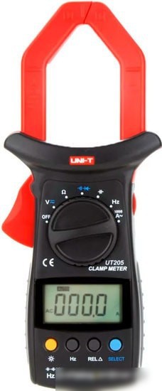Мультиметр UNI-T UT205 — это удобное устройство для измерения переменного и постоянного напряжения, тока, сопротивления и частоты. Он оснащён ЖК-дисплеем с хорошей разрядностью и подсветкой, что облегчает чтение данных. Модель также позволяет проверить диоды и прозвонить цепи, что бывает очень полезно при ремонте. Клещи раскрывателями до 40 мм позволяют измерять ток без отключения цепи, что ускоряет работу. Устройство автоматически переключает диапазоны, что делает его использование простым и безопасным. Питание от батарейки 6F22 обеспечивает мобильность, а в комплект входит футляр для хранения. Благодаря небольшому весу и компактным размерам, мультиметр удобно брать с собой в рабочие и домашние условия.