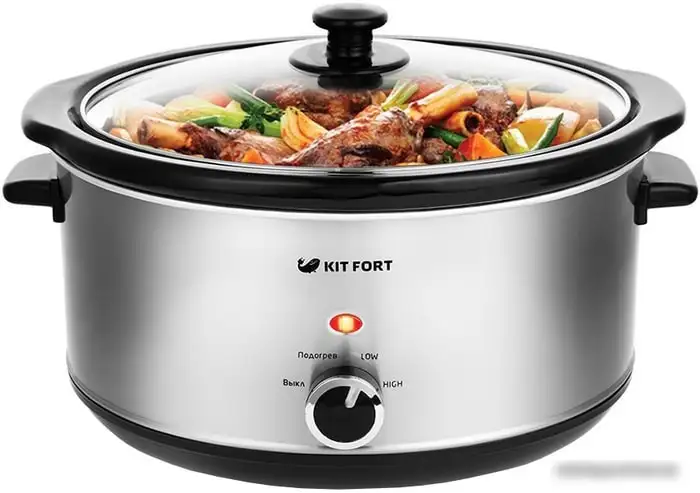 Медленноварка Kitfort KT-208 выполнена из нержавеющей стали и черного пластика, что придает ей современный вид. Она оснащена мощностью 280 Вт и объемом чаши 3,5 литра (общий объем — 4,5 л), что позволяет готовить достаточно пищи для семьи. Чаша имеет керамическое покрытие и овальную форму, что облегчает приготовление и уборку. Управление осуществляется механически, с возможностью установки двух режимов нагрева и регулировки температуры во время готовки. Устройство автоматически сохраняет функцию разогрева и работает без таймера, но позволяет выбрать оптимальную температуру. В комплекте идут 18 рецептов, что поможет быстро начать готовить новые блюда. Конструкция включает нагревательный ТЭН и съемную чашу, что облегчает использование и очистку. Медленноварка компактна — ее размеры: высота 255 мм, ширина 365 мм, глубина 265 мм, вес 4,6 кг. Надежность и функциональность позволяют удобно и быстро готовить разнообразную пищу дома.