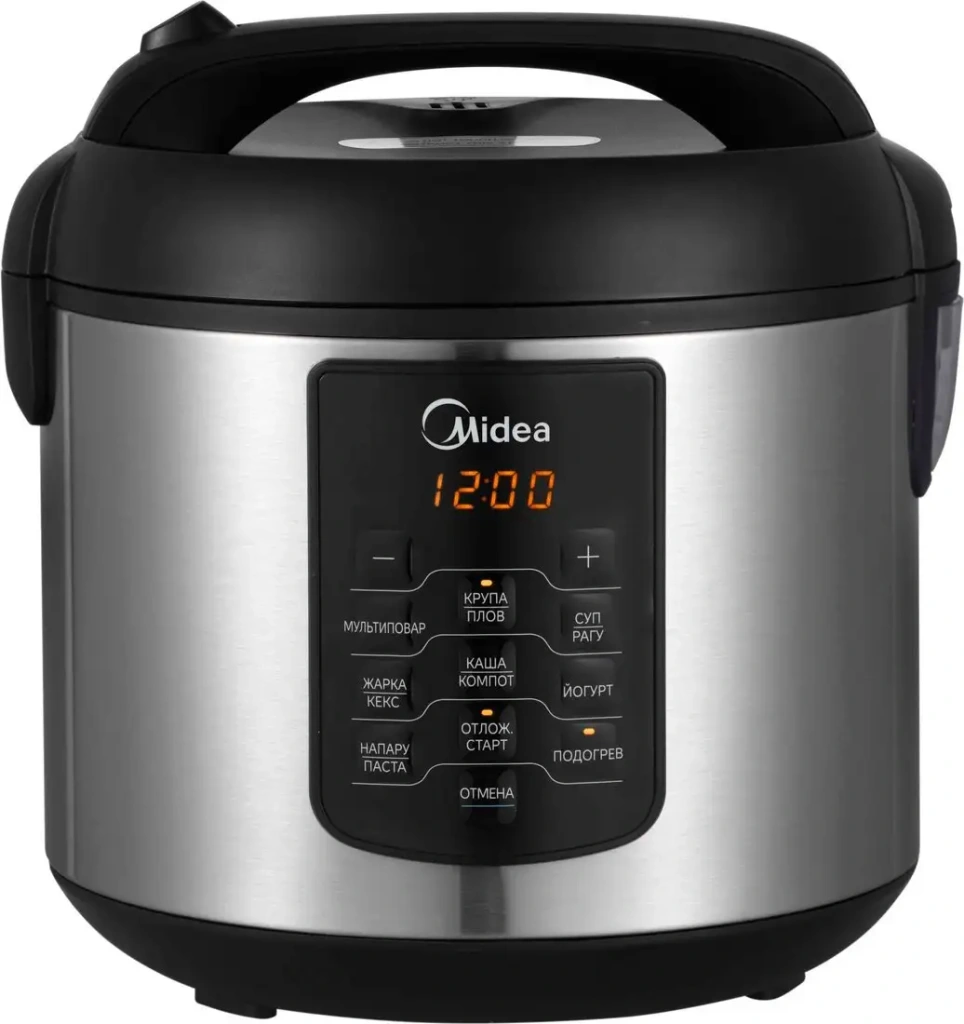 Мультиварка Midea MPC-6035 выполнена из нержавеющей стали и черного пластика, что делает её прочной и стильной. Она управляется электронным дисплеем с светодиодной подсветкой, что облегчает настройку и отслеживание процесса приготовления. Модель имеет мощность 860 Вт и объем чаши 5 литров, идеально подходящий для семейных порций. Чаша покрыта антипригарным слоем, что упрощает её очистку и предотвращает пригорание пищи. Мультиварка оснащена 7 автоматическими программами, которые позволяют готовить крупу, супы, жаркое, каши, йогурт и варить на пару. Функция разогрева и опция отсрочки старта до 24 часов добавляют удобства в повседневное использование. В комплект входит пароварка и рецепт, что помогает начать готовить сразу. Также устройство поддерживает установку температуры от 35 до 150 °C, что расширяет возможности приготовления. Размеры и вес позволяют легко разместить ее на кухне и переносить при необходимости.