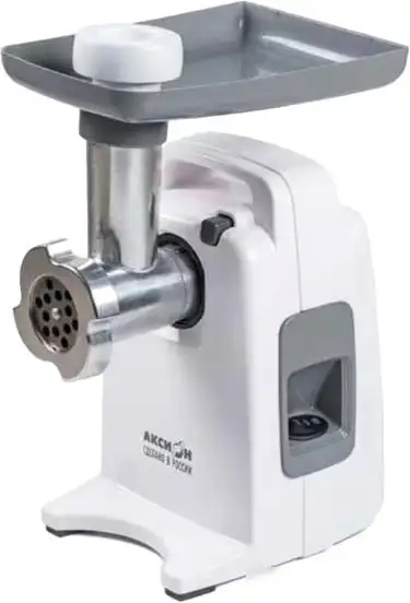 Мясорубка Аксион М321.01 работает мощностью 200 Вт и достигает до 1,5 кВт при блокировке вала, что позволяет быстро и легко измельчать мясо. Она производит до 1,7 кг мяса в минуту и оснащена функцией реверса, чтобы избежать застреваний. Корпус изготовлен из прочного пластика и представлен в белом цвете, что делает устройство легким и удобным в использовании. Размеры мясорубки: длина 200 мм, ширина 160 мм, высота 265 мм, весит она около 3700 г, что удобно для хранения. В комплект входят 3 формовочных диска, насадка Кеббе и насадка для домашней колбасы, что расширяет возможности использования. Механизм и насадки позволяют приготовить колбасу и котлеты, а также формировать мясные изделия. Мясорубка подходит для домашнего использования благодаря простоте работы и вместительным насадкам.