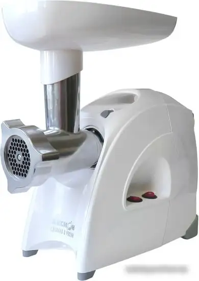 Мясорубка Аксион М641.01 обладает мощностью 300 Вт и может развивать до 2000 Вт при блокировке вала, что позволяет быстро и эффективно перерабатывать до 4 кг мяса в минуту. Ее корпус сделан из прочного пластика, а длина провода составляет 1,5 метра — устройство удобно в использовании и перемещении. В мясорубке есть функция реверса, которая помогает избегать застревания продукта. Внутри корпуса расположены насадки и аксессуары, включая две формовочные диска диаметром 4,9 и 8,5 мм, а также насадка для домашней колбасы. Это устройство легко управлять и легко чистить после использования. Модель хорошо подходит для приготовления мясных фаршей, колбас и других блюд дома. Ее белый цвет и простая конструкция делают ее приятной на вид и удобной в эксплуатации.