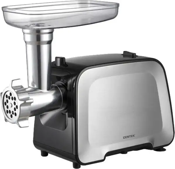 Мясорубка CENTEK CT-1604 — это мощный прибор с максимальной мощностью 2200 Вт, который легко справляется с переработкой мяса и другими продуктами. Она может измельчать до 2,2 кг мяса в минуту, что значительно ускоряет работу на кухне. Корпус сделан из прочного металла и пластика, а его современный дизайн сочетает серебристый и черный цвета. Машина оборудована функцией реверса, которая помогает избежать застревания продукта. В комплекте идут два формовочных диска с отверстиями 5 и 7 мм, а также насадки для приготовления колбасы и кеббе, что расширяет возможности использования.