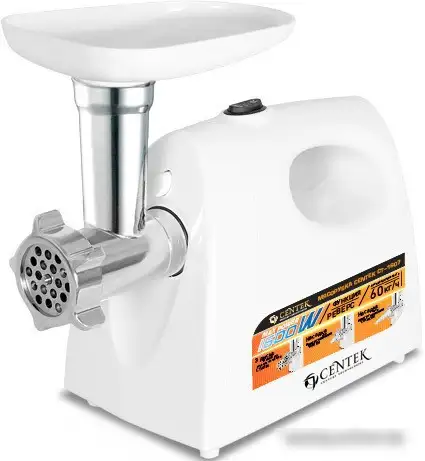 Мясорубка CENTEK CT-1607 имеет мощность 1600 Вт, которая позволяет быстро обработать до 1 кг мяса в минуту. Ее корпус сделан из прочного пластика, а цвет корпуса — белый. Модель оснащена функцией реверса, которая помогает легко избавиться от застрявшего мяса. В комплект входят три формовочных диска, позволяющих делать разные виды котлет и фарша. Она отличается простотой в использовании и уходе благодаря автоматическому сматыванию шнура.