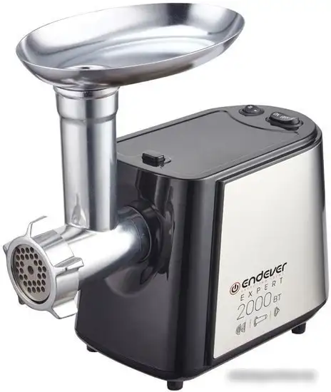 Мясорубка Endever Sigma-55 обладает мощностью 2000 Вт, что позволяет быстро и легко перерабатывать мясо. Она может обработать до 2,7 кг мяса в минуту, что удобно при большой загрузке. Корпус сделан из металла и пластика, а внешний вид дополняет нержавеющая сталь и черный цвет. В конструкции есть реверс, который помогает устранить застрявшие куски. Защита от перегрузки уменьшает риск повреждения прибора. В комплект входят два формовочных диска с отверстиями диаметром 5 мм и 7 мм, а также насадка для кеббе и для домашней колбасы.