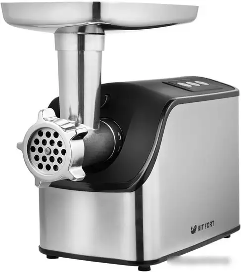 Мясорубка Kitfort KT-2104 – это мощный и надежный прибор для домашнего использования. Она имеет максимальную мощность 1800 Вт, что позволяет быстро перерабатывать до 2,3 кг мяса в минуту. Корпус сделан из прочного металла и пластика, а цвет – нержавеющая сталь и черный, что выглядит современно и стильно. В комплект входят три формовочных диска с отверстиями разного диаметра (3, 5 и 7 мм), а также насадки для приготовления кеббе и домашней колбасы. Мясорубка оснащена реверсом и защитой от перегрузки, что облегчает работу и повышает безопасность. Размеры устройства: длина 370 мм, ширина 180 мм, высота 310 мм, вес около 17,2 кг. Это удобный и многофункциональный аппарат для приготовления разнообразных блюд из мяса.