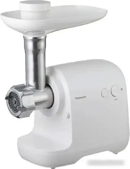 Мясорубка Panasonic MK-GX1700WTQ имеет мощность 290 Вт, а при блокировке вала достигает 1 700 Вт, что позволяет быстро перерабатывать до 3 кг мяса в минуту. Ее корпус сделан из прочного пластика и окрашен в белый цвет, а размеры позволяют легко разместить устройство на кухне. Мясорубка оборудована реверсом, который помогает избавиться от застрявшего мяса. В комплект входят три формовочных диска, а также насадки для приготовления Кеббе и домашней колбасы, что расширяет возможности использования.