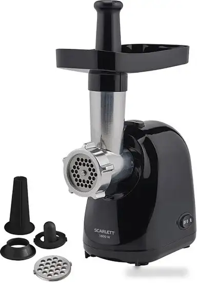 Мясорубка Scarlett SC-MG45S73 — это надежный помощник на кухне с мощностью 1800 Вт, которая позволяет быстро перетираять мясо со скоростью до 2 кг в минуту. Она выполнена из прочного пластика и имеет компактный размер, что удобно для хранения. Модель оснащена функцией реверса, которая помогает избежать засоров при переработке tougher продуктов. В комплект входят два формовочных диска с отверстиями 5 и 7 мм, а также насадки для приготовления кеббе и домашней колбасы, что расширяет возможности использования. Эта мясорубка легко управляется и работает стабильно благодаря хорошей конструкции. Ее вес около 2 кг делает ее удобно переносимой и незаменимой в домашней кухне.