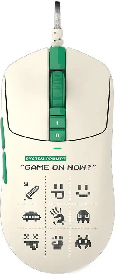 полноразмерная игровая мышь, проводная USB Type-A, сенсор оптический 20000 dpi, 9 кнопок, колесо с нажатием, цвет бежевый/зеленый/цветной принт