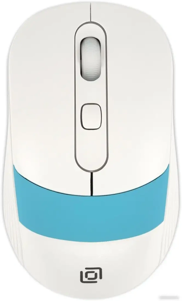 ноутбучная мышь, беспроводная радио, сенсор оптический 3200 dpi, 4 кнопки, колесо с нажатием, цвет белый/голубой