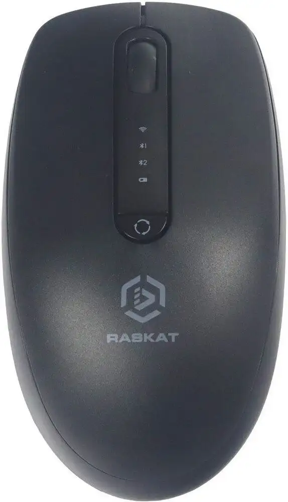Мышь Raskat M002WBR это полностью беспроводное устройство, которое подключается через Bluetooth или радио и не требует проводов. Она имеет полноценный размер и отличается легким весом — всего 68 грамм. На мыши есть пять кнопок, включая кнопку смены разрешения и интерфейса подключения, что помогает настраивать работу под свои нужды. Сенсор с разрешением до 1600 dpi обеспечивает точное управление курсором. Модель не обладает подсветкой и оснащена механическими переключателями, что делает клик тихим и надежным. На мыши есть одно колесо прокрутки с нажатием для удобства навигации. В комплект входит USB-передатчик, кабель для зарядки и документация — всё для быстрой настройки и использования. Мышь питается встроенным аккумулятором, заряжается через USB Type-C. Ее размеры — 113 мм в длину, 62 мм в ширину и 38 мм в высоту, которую удобно держать в руке. Ее удобно брать с собой благодаря компактным размерам и современному дизайну.