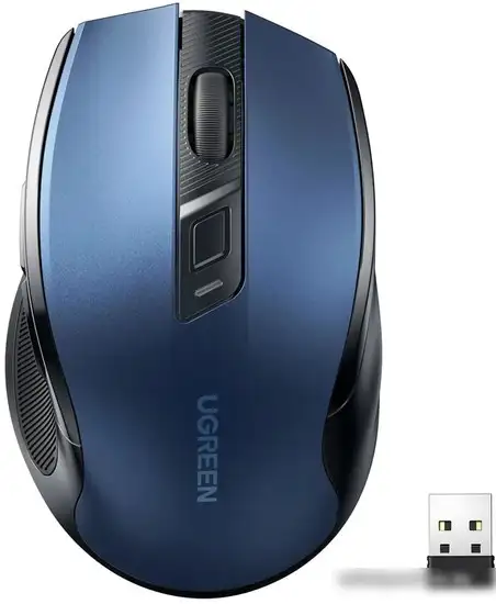 Мышь Ugreen MU006 — это удобное беспроводное устройство для работы за компьютером. Она подключается по радио с помощью интерфейса 2.4 ГГц и гарантирует стабильное соединение на расстоянии до 15 метров. Мышь имеет полноразмерный корпус из прочного пластика и выполнена в голубом цвете. Сенсор с разрешением до 4000 dpi позволяет точно управлять курсором. В устройстве предусмотрено шесть кнопок, включая кнопки для перелистывания страниц и смены разрешения сенсора, что делает работу более удобной. Питание обеспечивается одной батарейкой АА, а индикатор заряда поможет своевременно заменить элемент питания. Размеры мыши: длина 110 мм, ширина 70 мм и высота 35 мм — она легкая и компактная. У мыши есть основная колесика для прокрутки с нажатием, что облегчает навигацию по документам. Модель не имеет подсветки или встроенной памяти, что делает её простой в использовании и обслуживании.