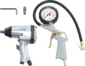 Этот набор включает пневмогайковерт и пневмопистолет, которые помогают быстро и легко работать с автотехникой. Пневмогайковерт обеспечивает надежное откручивание и закручивание гаек благодаря мощному воздуху. Пневмопистолет используется для накачки шин, при этом оснащен манометром, чтобы контролировать давление воздуха. В комплект входит шестигранный ключ 4 мм, необходимый для выполнения различных задач. Благодаря пневмогайковерту вы экономите время, а пневмопистолет с манометром гарантирует безопасную и точную накачку шин. Все инструменты удобно держать в руке и использовать даже длительное время. Этот набор подойдет для автосервисов и тех, кто занимается обслуживанием автомобиля самостоятельно.