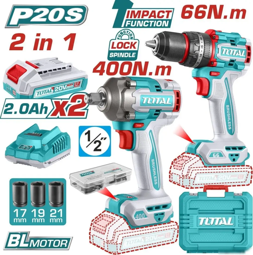 Total TCKLI20275 (шуруповерт, гайковерт, 2 АКБ, кейс)