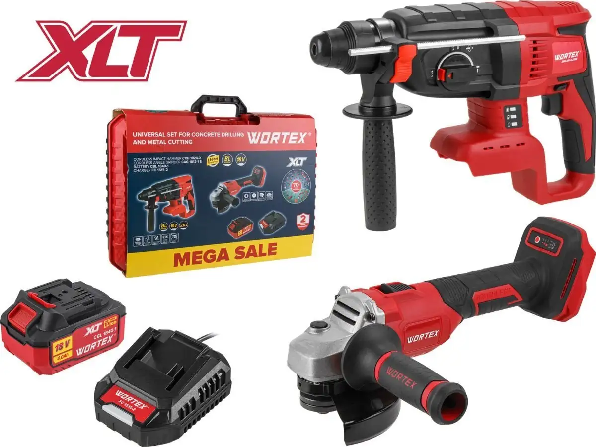 Wortex 1329852 (перфоратор, болгарка, 1 АКБ, кейс)
