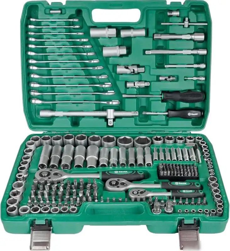 Этот универсальный набор инструментов БелАК Мастер БАК.07013 включает 216 предметов, подходящих для разных ремонтных задач. В комплект входят торцевые и глубокие головки разных размеров для 1/4", 3/8" и 1/2" посадочных размеров, что позволяет работать с различными болтами и гайками. В наборе есть трещоточные ключи, гибкие карданные валы и удлинители, что облегчает доступ к труднодоступным местам. Включены отвертка-битодержатель и широкий выбор бит-насадок, что удобно при работе с электроинструментами. В комплект также входят комбинированные и шестигранные ключи, а также специальные свечные головки и адаптеры. Все инструменты хранятся в компактном кейсе для удобства транспортировки и хранения. Устройство позволяет быстро менять насадки и обеспечивают надежный захват. Также предусмотрены переходники и соединители для расширения функциональности.