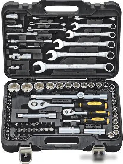Этот универсальный набор инструментов Berger BG082-1214 содержит 82 предмета, которые подойдут для ремонта и обслуживания автомобиля или дома. В набор входят торцевые головки разного размера (1/4" и 1/2"), трещотки с быстрым сбросом и различные удлинители для удобства работы. Также есть разнообразные биты для отвертки, ключи и переходники, что позволяет использовать их с различными инструментами. В комплектацию входят свечные головки и комбинированные ключи, что расширяет возможности использования. Все предметы удобно хранятся в прочном чемодане, обеспечивая порядок и быстрый доступ. Этот набор отлично подойдет как для профессионалов, так и для домашних мастеров.