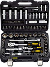 | Комплектация | - 13 шт.: 1/4” Головки торцевые 6-гранные Super Lock: 4, 4.5, 5 ,5.5, 6, 7, 8, 9, 10, 11, 12, 13,14 мм- 8 шт.: 1/4” Головки торцевые длинные 6-гранные Super Lock: 6, 7, 8, 9, 10, 11 ,12, 13 мм- 2 шт.: 1/4” Удлинитель: 50, 100 мм- 1 шт.: 1/4” Трещотка (ключ трещоточный с быстрым сбросом): 45 зубов- 1 шт.: 1/4” Отвертка с присоединительным квадратом- 1 шт.: 1/4” Кардан шарнирный- 1 шт.: 1/4” Вороток Т-образный: 110 мм- 18 шт.: 1/4” Биты: Hex (шестигранник): 3, 4, 5, 6 , PH (крест): 1, 2, Pz (позидрайв): 1, 2, Slot (шлиц): 4, 5.5, 6.5, Torx (звёздочка): T8, T10, T15, T20, T25, T27, T30- 1 шт.: 1/4” Адаптер для бит- 17 шт.: 1/2” Головки торцевые 6-гранные Super Lock: 10, 11, 12, 13, 14, 15, 16, 17, 18, 19, 20, 21, 22, 24, 27, 30, 32 мм17 шт.: 1/2” Головки торцевые длинные 6-гранные Super Lock: 14, 15, 17, 19, 22 мм- 2 шт.: 1/2” Головки свечные: 16, 21 мм- 1 шт.: 1/2” Трещотка (ключ трещоточный с быстрым сбросом): 45 зубов- 2 шт.: 1/2” Удлинитель: 125, 250 мм- 1 шт.: 1/2” Переходник скользящий- 1 шт.: 1/2” Кардан шарнирный- 16 шт.: 5/16” Биты: Hex (шестигранник): 8, 10, 12, 14, Slot (шлиц): 8, 10, 12, PH (крест): 3, 4, Pz (позидрайв): 3, 4, Torx (звёздочка): T40, T45, T50, T55, T60- 1 шт.: 5/16” Адаптер для бит- 2 шт.: Ключи шестигранные: 2, 2.5 мм |
