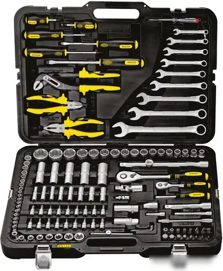 Этот универсальный набор инструментов Berger BG128-1214 включает 128 предметов, что сделает его полезным для различных ремонтных и монтажных работ. В комплект входят торцевые головки разных размеров и типов, а также глубокие головки, что помогает работать с разными болтами и гайками. В наборе есть две трещотки на 1/2" и 1/4", ключи, отвёртки, биты и головки со вставками для максимальной универсальности. Также есть пассатижи, клещи, тестер и бокорезы, что расширяет возможности использования. Уникальная особенность — гибкий удлинитель и удлинители разного размера, которые позволяют добраться до труднодоступных мест. Используйте этот набор для ремонта дома, машины или другой техники.
