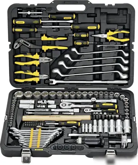 Универсальный набор инструментов Berger BG1311214 включает 131 предмет, что делает его подходящим для различных ремонтных и монтажных работ. В комплект входят торцевые головки разных размеров, трещотки, карданные и удлинители, а также воротки с шарнирным механизмом, что облегчает работу в труднодоступных местах. Также здесь есть комбинированные и накидные ключи, пассатижи, длинногубцы, клещи переставные и молоток с деревянной ручкой. Для более точных работ представлены отвертки с разными насадками и биты. Такой набор позволяет быстро и удобно справляться с разными задачами по дому и в мастерской.