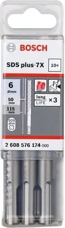 | Комплектация | Ударные сверла SDS-plus-7X 6 x 50 x 115 mm |