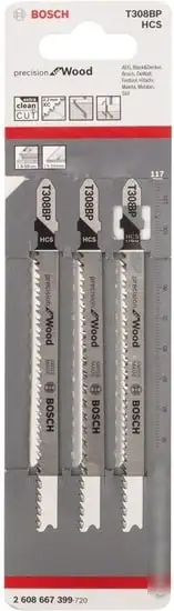 Этот набор оснастки Bosch содержит три аксессуара, которые помогут вам выполнить разнообразные работы. В комплект входит пильное полотно T 308 BP, предназначенное для резки различных материалов. Он легко устанавливается и обеспечивает точное и чистое срезание. Используйте этот набор, чтобы быстро и удобно справляться с проектами дома или в мастерской. Комплект подходит для тех, кто ценит качество и надежность инструмента Bosch. Простое использование делает его хорошим выбором для регулярных задач. Благодаря высокому качеству оснастки, вы будете получать хорошие результаты при каждом использовании.