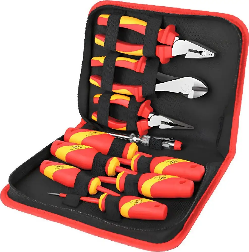Электромонтажный набор Deli DQ91003 включает 10 необходимых инструментов для электромонтажа и ремонта. Все инструменты имеют диэлектрическую изоляцию, что обеспечивает безопасное использование. В комплект входят индикаторная отвертка для проверки напряжения, а также отвертки и плоскогубцы с защитой VDE, которые позволяют работать с электрикой безопасно и комфортно. Специальные бокорезы и длинногубцы помогают резать и удерживать провода с легкостью. В комплекте также есть изолированные отвертки PH и SL различных размеров, что расширяет возможности работы. Инструменты предназначены для повышения точности и сокращения времени выполнения задач благодаря качеству и удобству в использовании. Все предметы аккуратно упакованы в набор, что делает его удобным для хранения и транспортировки. Такой набор идеально подходит как для профессионалов, так и для домашних мастеров, которым важна безопасность и эффективность работы.