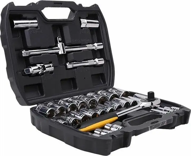 Этот универсальный набор инструментов Deli EDL1032 включает 32 предмета, которые понадобятся дома или в гараже. В комплект входят торцевые головки и трещотка, что позволяет быстро и удобно затягивать и откручивать гайки и винты. В наборе есть Т-образный вороток и кардан, которые помогают работать в труднодоступных местах. Удлинители обеспечивают больше рычага и удобства при работе с крупными соединениями. Все инструменты выполнены в размере 1/2", что повышает их универсальность. Набор подходит для различных ремонтных и монтажных задач. Каждая деталь легко меняется и фиксируется благодаря качественной конструкции. Удобная организация набора помогает сохранять инструменты в порядке. Этот набор создан для тех, кто ценит качество и готовность к различным задачам.