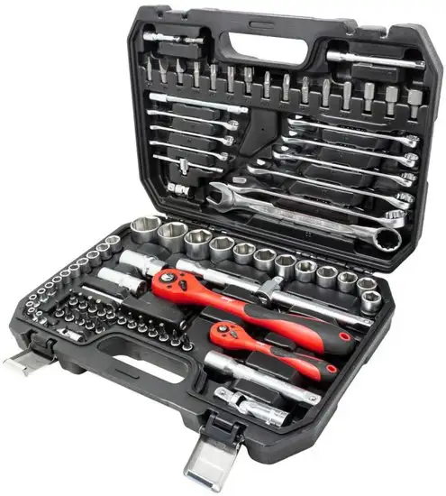 Этот универсальный набор инструментов Disen 4821-5 включает 82 предмета, которые понадобятся для различных ремонтных и монтажных работ. В комплект входят торцевые головки размером 1/4" и 1/2", трещотки, T-образный вороток и карданные соединения для удобства работы под разными углами. Также есть удлинители, головки свечные и гибкий удлинитель для доступа к труднодоступным местам. Среди инструментов есть комбинированные ключи и разнообразные биты — отвертки с различными наконечниками, что позволяет выполнять широкие задачи. Такой набор отлично подходит как для домашнего использования, так и для профессиональных целей, обеспечивая всё необходимое в одном месте.