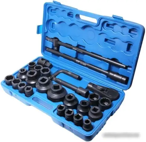 Универсальный набор инструментов ForceKraft FK-68262-5MPB включает 26 предметов, которые пригодятся для различных ремонтных работ. В комплект входят торцевые головки разного размера для более удобного закрепления и откручивания болтов и гаек, а также трещотка и T-образный вороток для легкого приложеня силы. Есть также удлинители, что помогает добраться до труднодоступных мест. Посадочный размер квадратных головок — 3/4" и 1", что делает набор универсальным. Такой комплект хорошо подходит для домашнего использования и небольших профессиональных задач. Он удобен в использовании благодаря хорошо подобранным инструментам и их качественному выполнению. Этот набор станет надежным помощником в любой мастерской или гараже.
