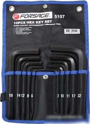 Этот набор ключей FORSAGE F-5107 включает 10Г-образных шестигранных ключей разных размеров: 6, 7, 8, 10, 11, 12, 14, 17, 19 и 22 мм. Он подходит для различных ремонтных и сборочных работ благодаря разным размерам ключей. Каждый ключ сделан из прочного материала и имеет удобную форму для хвата. Такой набор удобно хранить и брать с собой, он занимает мало места. В комплект входят угловые ключи, что позволяет работать в трудных местах, где нужен поворот под углом. Это набор, который послужит надежным помощником дома или в мастерской.